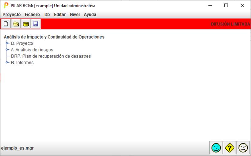 La barra inferior presenta el nombre del fichero, o el URL de la base de datos.