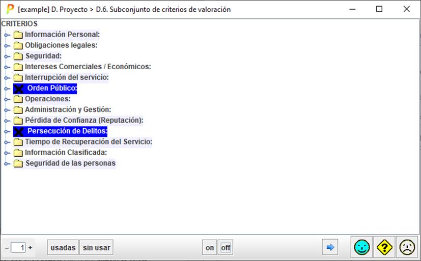Selecciona aquellos criterios que se utilizan actualmente en el proyecto de análisis de riesgos.