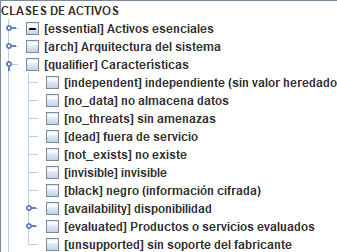 Versiones anteriores permitían marcar algunas características especiales. Estas características se han trasladado a las clases que califican un activo: