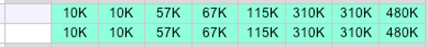Tabla - Tantas columnas como escalones de interrupción. Ver “Escalones de interrupción”.