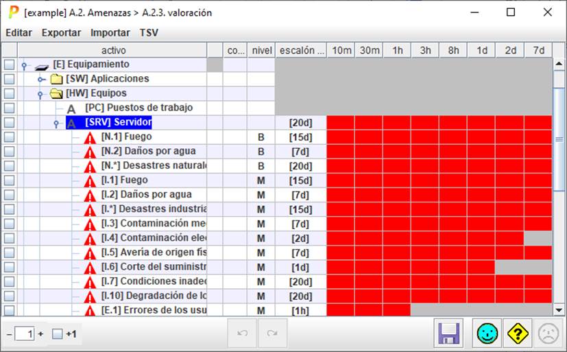 Ajusta el despliegue ([11]). Si se marca [+1], PILAR muestra las amenazas asociadas a cada activo. |