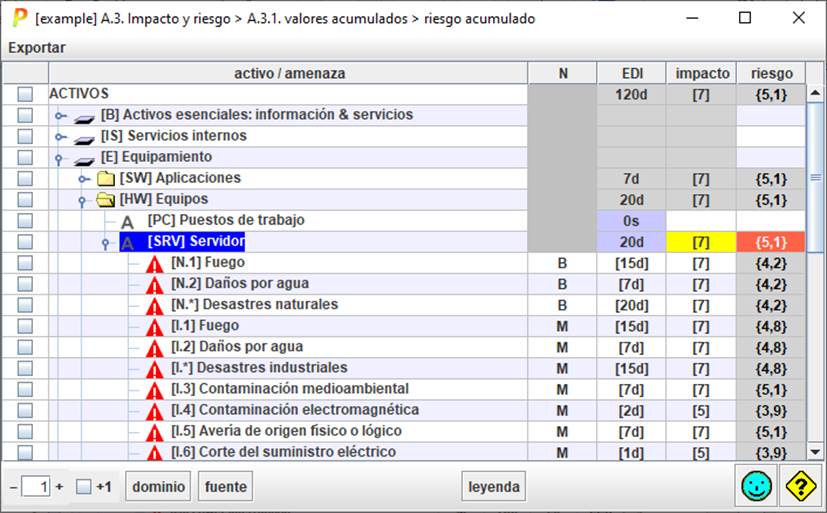 Árbol de activos y amenazas. Haga clic-clic para colapsar / expandir el árbol. |