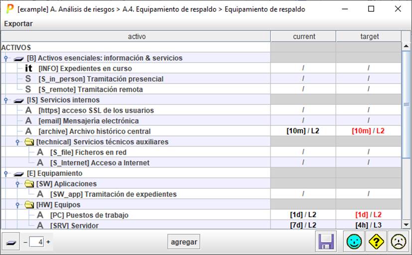 PILAR presenta las consecuencias sobre los activos esenciales de los tiempos de recuperación de los activos de los que depende.