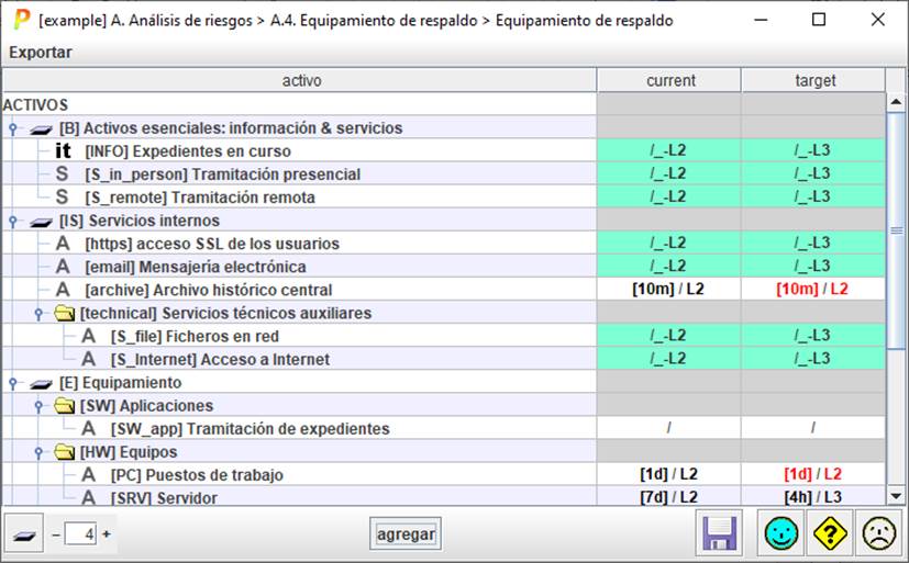 Pilar calcula las consecuencias para los activos esenciales del backup que hayamos previsto para el equipamiento del que depende cada uno.