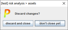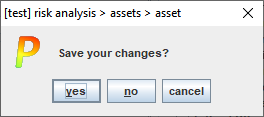 If there are changes, and you try to close the window, PILAR will ask for instructions on how to proceed: