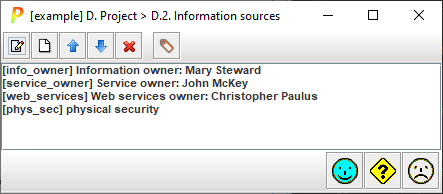 This screen is used to identify and manage information sources.