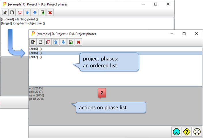 Let us identify the phases of the project, to show risk evolution. At least, there is always a base phase, which shows the current situation. Then several phases mark the future evolution.