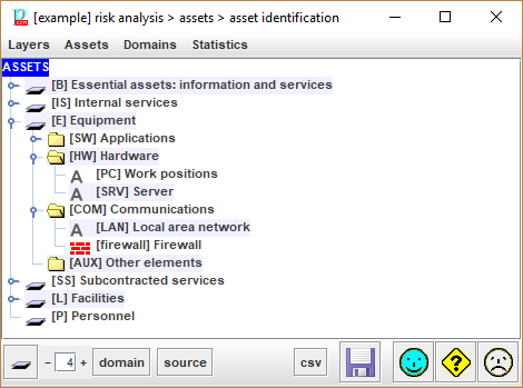 Click and select a security domain. PILAR will select the assets in that domain. |