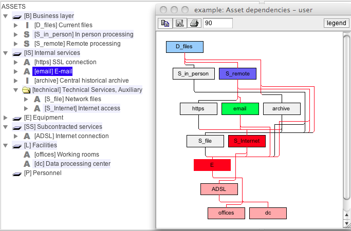 The graph shows the relationships between assets. It only presents the assets related to those selected on the main screen, or all the assets if nothing is selected.