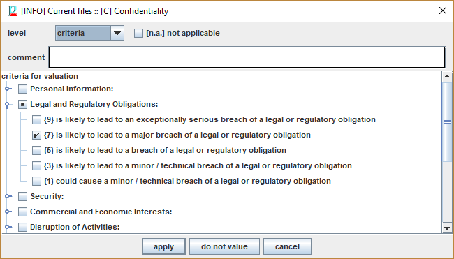 Alternatively, you may open a valuation screen where you may include comments and criteria for valuation.