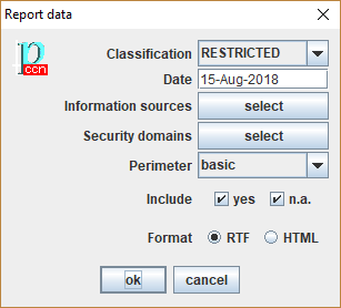 Establishes the marking of the report. A minimal marking is established in the Project data. Here you can raise it. |