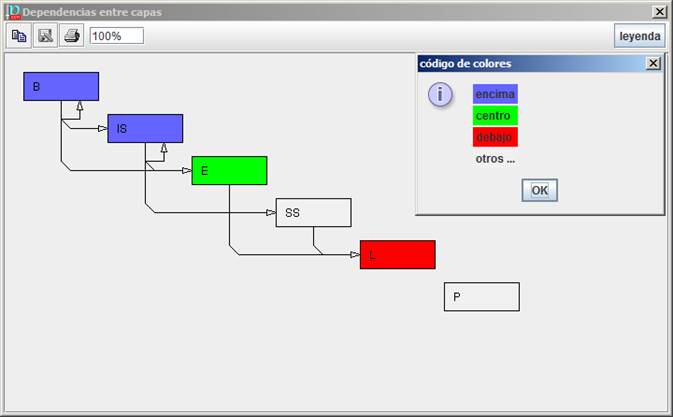 El gráfico muestra las relaciones entre las capas. Una capa L1 depende de una capa L2 si hay algún activo en L1 que dependa de algún activo en L2.