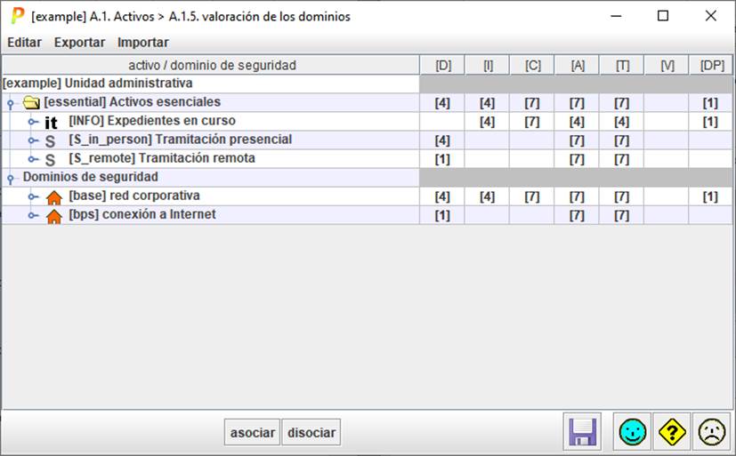 Cada dominio hereda la valoración de los activos esenciales que contiene y de los asociados a él.