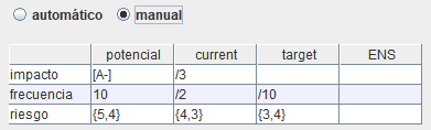 En modo manual indicaremos en qué medida se reduce el impacto y la probabilidad en cada fase del proyecto