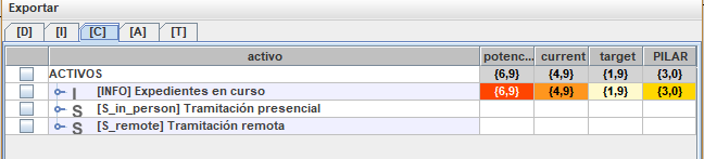 Si hace clic en la cabecera de una columna, PILAR conmuta entre columnas y pestañas: