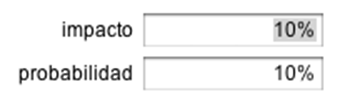 Filtro para ver solo algunos riesgos. Haga clic en la imagen para elegir la fracción que desea ver. Puede elegir un porcentaje para impacto y un porcentaje para riesgos. Los valores típicos son 10% y 10%, seleccionando el 10% de mayor impacto y el 10% de mayor riesgo (es decir, la parte superior derecha de la tabla de impacto-probabilidad)