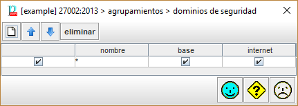 En la banda azul superior, el usuario puede editar y seleccionar agrupamientos. Por defecto, siempre hay un grupo que incluye todos los dominios
