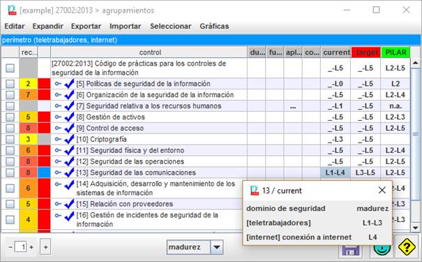 La pantalla de agrupamientos es bastante similar a la de valoración, pero solo permite leer datos: