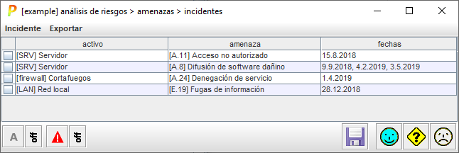 las cabeceras de las columnas, PILAR ordena los incidentes por activo, amenaza