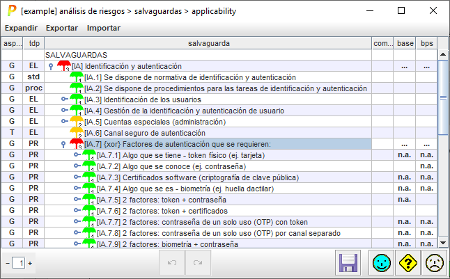 pantalla presenta un resumen de las salvaguardas que aplican en cada dominio de