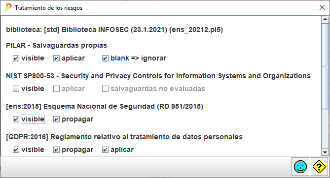 Se puede controlar cómo se usan las diferentes medidas de seguridad (salvaguardas y controles en perfiles EVL).